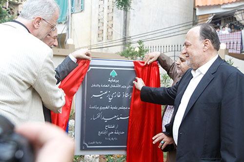 بمناسبة عيد المقاومة والتحرير وبرعاية وزير الاشغال العامة والنقل غازي زغيتر وضمن مشروع حدائق الاحياء، إفتتحت بلدية الغبيري حديقة حي الجامع في الشياح - شارع عبد الكريم الخليل.